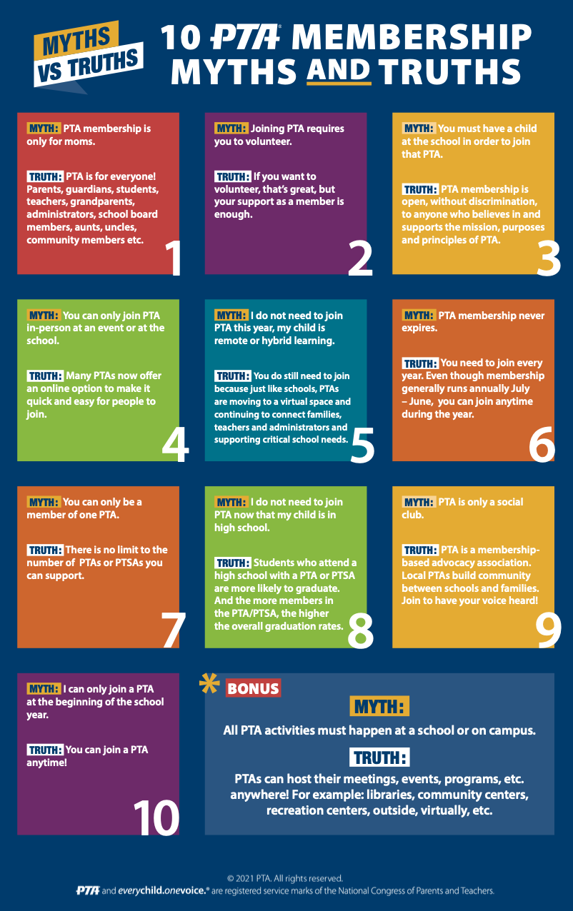 For further information about the benefits of PTA membership please visit the Value of PTA page.